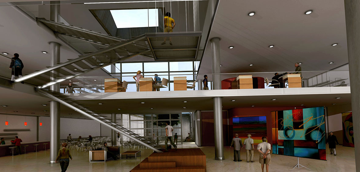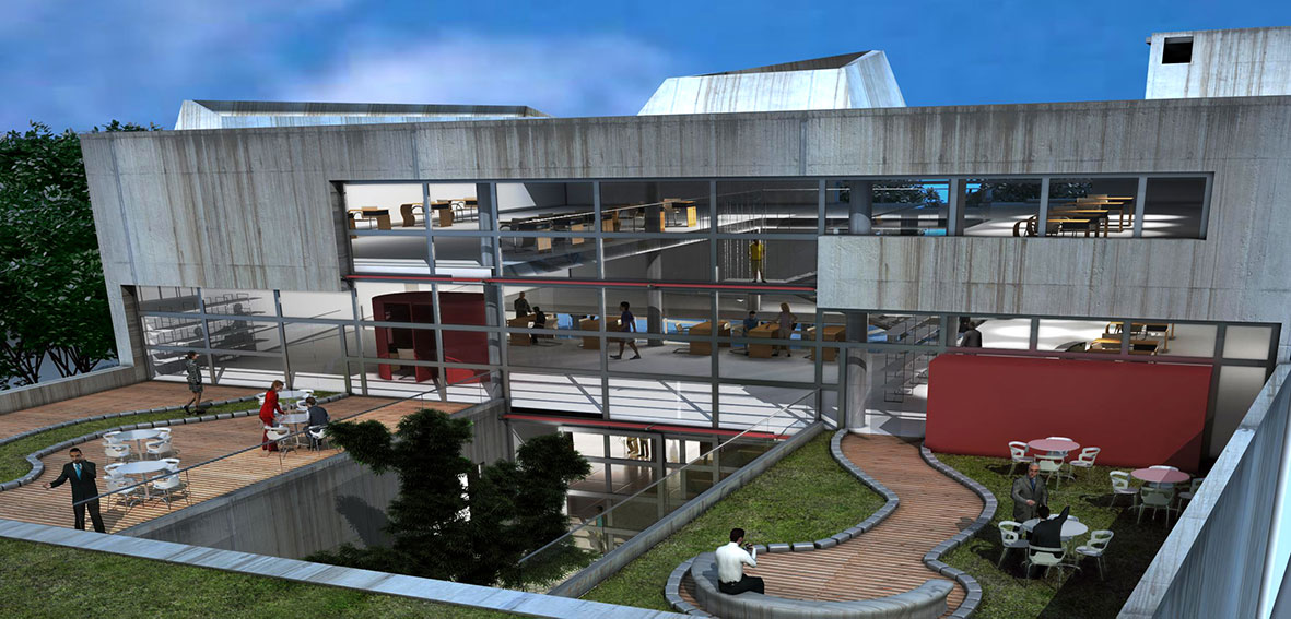 La dinámica del movimiento , la transparencia visual y la interconexión de espacios, hace de este edificio una creación alegre, vivaz y brillante. La luz invadiendo desde las grandes lucarnas, recorriendo y bajando a cada rincón contagia este efecto. Finalmente ese espacio exterior en distintos niveles de patio y terrazas atrae a través de la transparencia longitudinal al propio rio y su costanera.