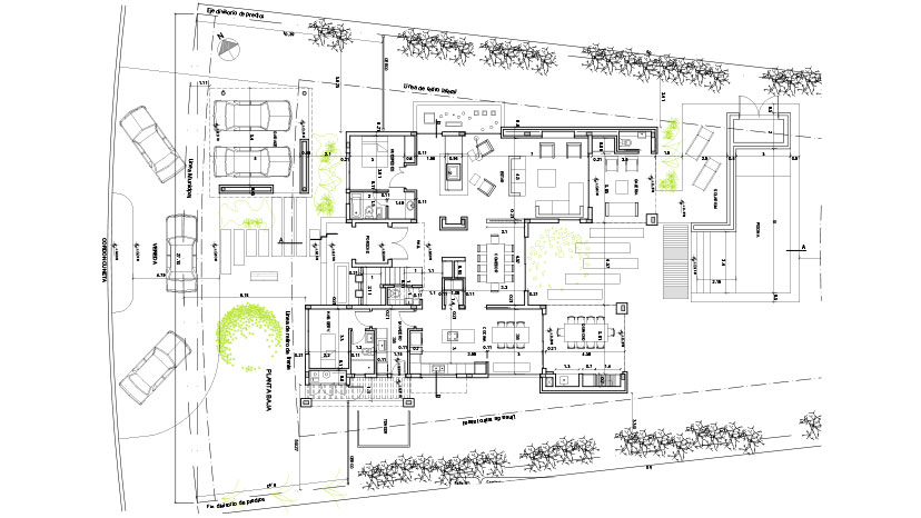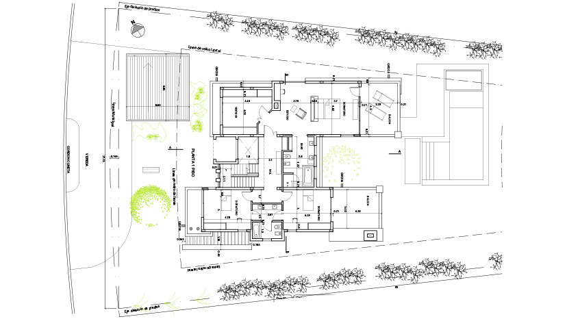 La segunda encomienda de un cliente en poco tiempo, luego de vivir en una casa proyectada por nuestra Oficina de Arquitectura reinicia la ilusión con el fin de agrandar espacios y familia, nos encuentra entonces con la doble satisfacción del trabajo bien cumplido y el encargo de un nuevo desafío. En este caso con la premisa de una imagen clásica hacia el exterior, logramos combinar el encanto de los espacios flexibles y la circulación moderna dentro de una estructuración de planta estilista y muy funcional. El atrio de entrada en conjunto con la triple altura del hall le otorgan a la obra una imagen de monumentalidad arquitectónica eclecticista en contraposición y equilibrio con la libertad visual y la interconexión espacial, en un intento de conjugar lo mejor de ambas historias. Y como siempre el sutil trabajo de ahondar en la unión de los espacios exteriores e interiores mediante su interrelación constante nos lleva en este caso a moldear el enclave del patio del árbol como una entrada de la naturaleza en el corazón de la propia casa. El disfrute de la vida, la comunidad con la tierra y la reflexión.