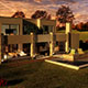 Por último la distintiva implantación del núcleo central de la casa en el terreno, profundo y girado directamente hacia las vistas de la laguna, dan luz y nacimiento al patio de las piedras que se proyecta sobre la idea de diferenciar la calidad y uso del antejardín incorporando en este caso el diseño del piso y el uso de múltiples y divergentes macetones de estilo colonial latinoamericano que otorgan al lugar la mezcla exacta de modernidad y tradición.