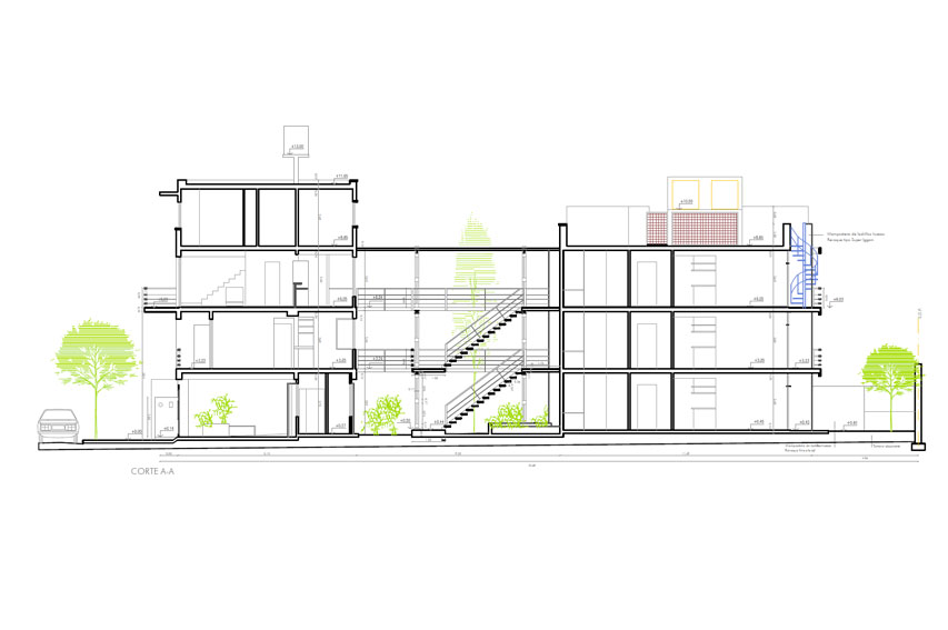 Pedraza Plaza es el resultado de una etapa de investigación del estudio sobre la tipología del PH como fundamento básico de la propiedad privada de la clase media en la Ciudad de Buenos Aires y su reinterpretación dentro del marco de una ciudad en crecimiento y presión demográfica que demandaba productos de calidad ambiental. Asi surge este edificio que se piensa sobre la base de resolver unidades de apartamentos en calidad de casa en comunidad y en relación con la naturaleza. Valorando los espacios verdes, las expansiones y los patios para amplificar la idea de luz, aire y vida.