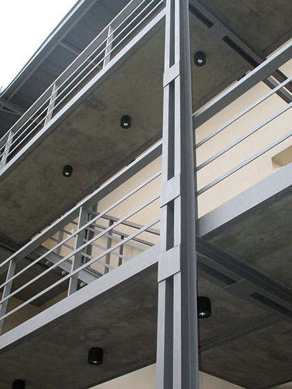 El uso de los materiales en bruto, desnudos de ornamento superficial y llenos de textura propia desbordando personalidad y belleza, en combinación simple con lo natural del espacio vacio en clave de verde y cielo, abordando entonces lo esencial de esta obra y en general el desafio de la arquitectura, el espacio humano en complemento con el espacio universal.