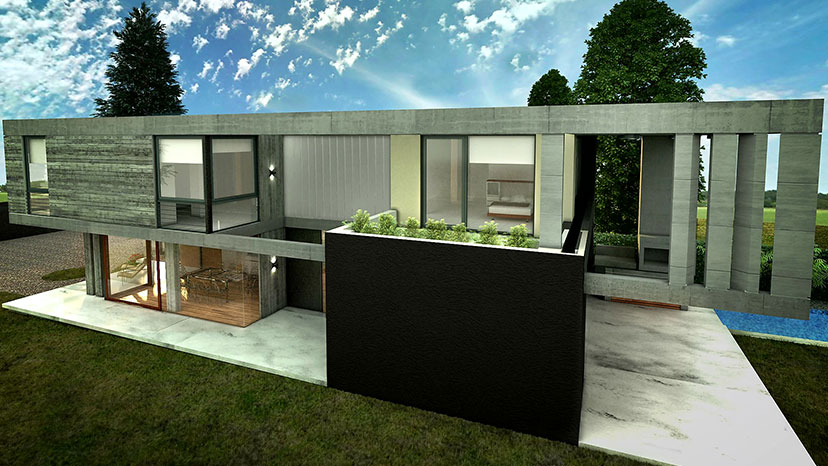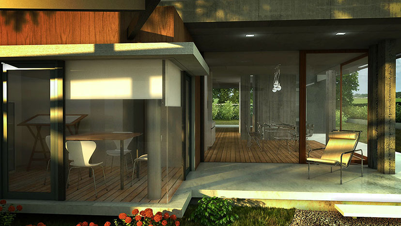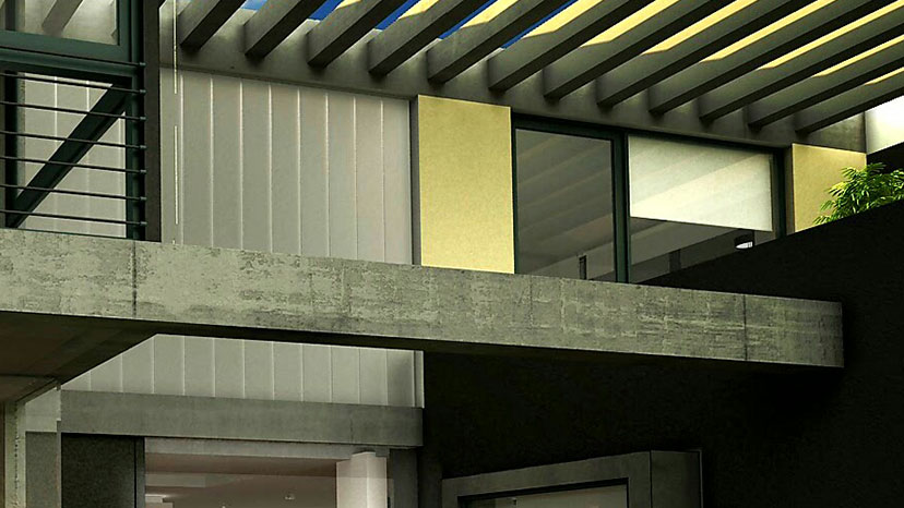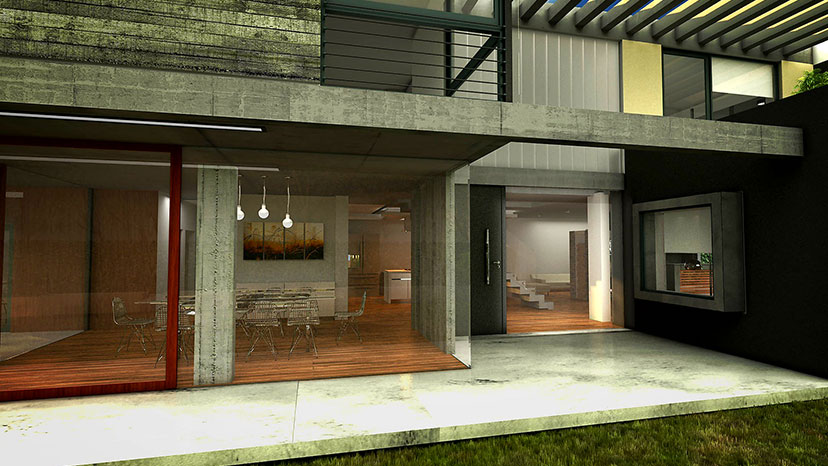 Es a partir de este concepto regente de la idea arquitectónica que aparecen los patios, los recorridos peatonales y la transparencia como articuladores de estos espacios. Para definir obviamente interior y exterior pero a la vez unirlos en un mismo sentido común de la Planta Baja. Entonces asi, Corredor, Patio, Zaguán, Sala de Estar, Pasarela de acceso, jardín, muros vecinos se convierten en parte de la misma estructura de relaciones. La Planta Alta entonces surge como más tectónica en este caso, para contrarrestar y equilibrar la imagen hacia una de fuerte presencia. Los materiales no son extraños a estas decisiones, tanto el vidrio como el Hormigon Visto acompañan cada una de las propuestas dando al conjunto una vista brutalista y refinada a la vez, despojada de ornamentaciones pero provista de una alta resolución del detalle.