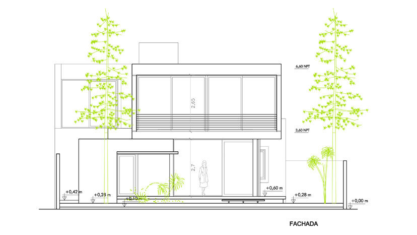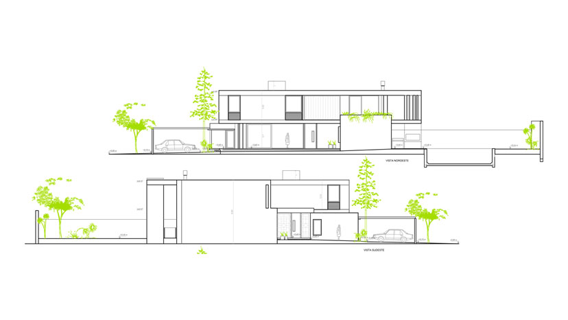 El desafio de proyectar una casa con “cuatro fachadas” en una tipología de perímetro semilibre fue nuestro compromiso en este nuevo encargo. La posibilidad de romper lo más posible con el concepto de medianera en un contexto donde las propiedades se recuestan sobre un costado y dejan libre y se expanden hacia el otro fue la motivación. La necesidad de otorgarle un gran valor arquitectónico a ese espacio urbano lateral que surge largo y angosto pero que conecta frente con contrafrente, calle con fondo y otorga vida y dinamismo visual al armado de la manzana.