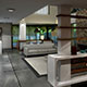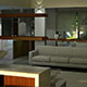 La imagen general se resuelve con el peso tectónico de los volúmenes superiores en contraposición con la transparencia de la Planta Baja que logra siempre ese efecto intenso de la ingravidez. El vano del frente se recubre de un parasol continuo en línea para reforzar esa volumetría.